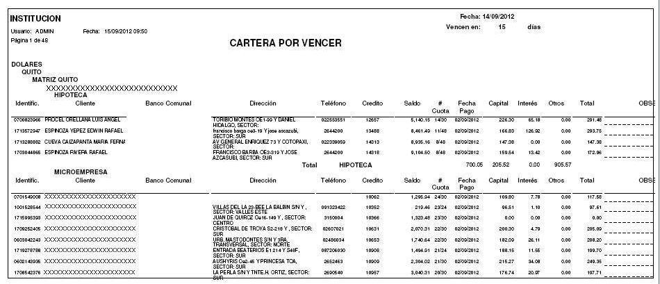 Este proceso permite generar un reporte de cartera por vencer. La ventana que aparece al seleccionar esta opción es la siguiente: