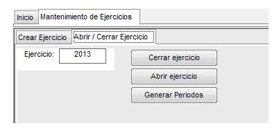 Una vez creadas las tablas para procesar un nuevo ejercicio, y creado al menos un período, se seleccionará la pestaña “Abrir/Cerrar Ejercicio” apareciendo la siguiente ventana: