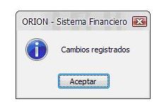 Una vez registradas las modificaciones, seleccionar “Guardar” en la barra de herramientas, apareciendo el mensaje: