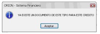 En el caso de que ya se haya realizado el registro del documento, o el mensaje: